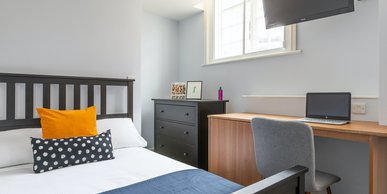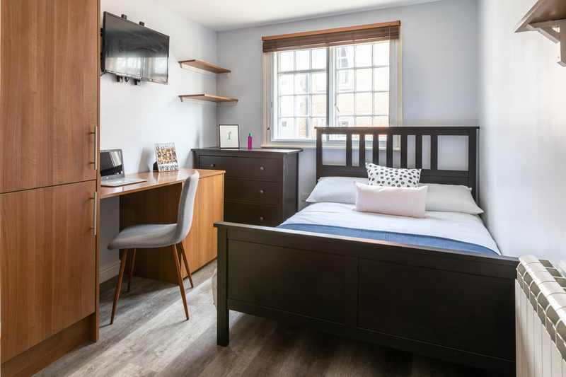 Our ensuite rooms come complete with everything you need. Your own private room with a small double bed, ensuite bathroom, space to study and plenty of storage. You’ll share a social living space and kitchen with 2 others. Each kitchen comes fully equipped with a fridge freezer, oven and microwave and washing machine. All utility bills, free WIFI and free laundry are included in the rent.