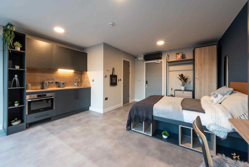 Take a look at our fabulous luxury studio, equipped with everything the modern student needs for a perfect home away from home! Anti-bacterial filtered air conditioning creates a light and breezy feel to the studio, ensuring ultimate safety. When it’s time to unwind, visit the cosy common room or the fantastic cinema room to relax. Staying in our luxury studio means you get access to our top-quality gym with state-of-the-art equipment. Concentrate with studying at your very own desk or visit the study room for maximum focus.