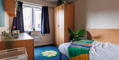 Your room comes with a single bed with underbed storage, a wardrobe, drawers, study desk and chair and a shelving unit for all your books.