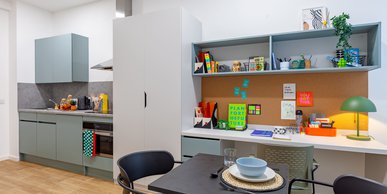 Situated on floors G-4, 19-21m, this is a great value choice, with your own en-suite bathroom, private kitchen area, comfortable bed, loads of storage and a study space.