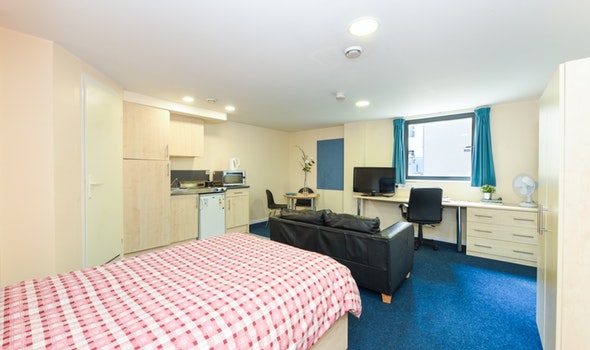 Self contained studio bedroom with own kitchen and bathrooms Dual occupancy available Double bed Under-bed storage, desk, chair, wardrobe and chest of drawers