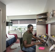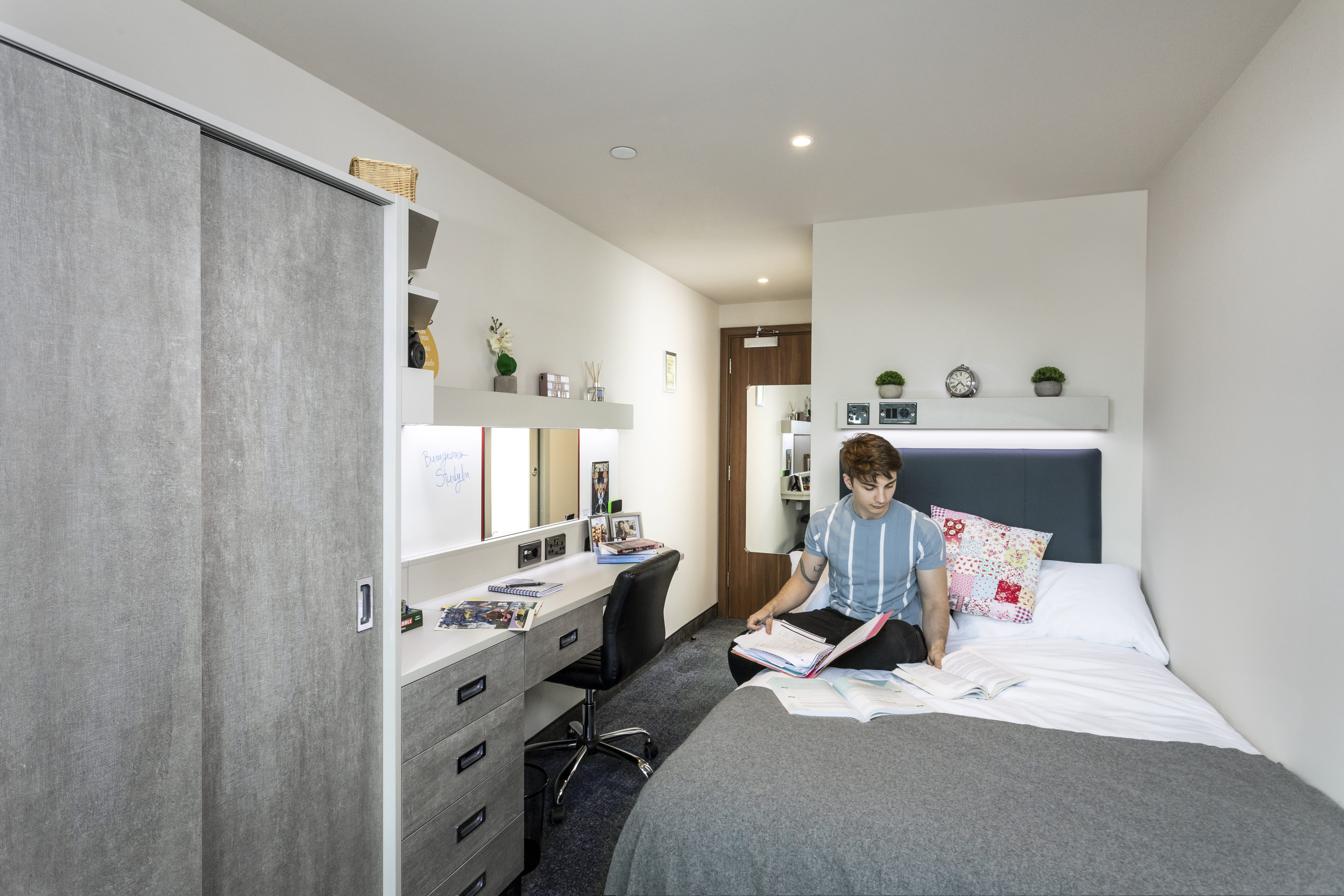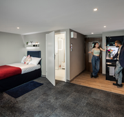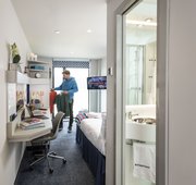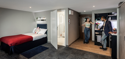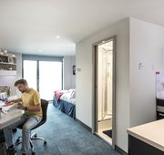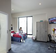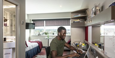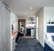 Platinum en-suite apartment rooms come complete with your own en-suite bathroom, work desk, wardrobe, and a comfy double bed.