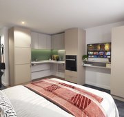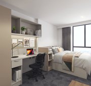 These spacious student accommodation rooms are designed with accessibility in mind. Each room contains a bedroom, kitchenette and ensuite wet room, plus plenty of features for ease and comfort. With 20.8-22.2 sqm, these student rooms are spacious in size.