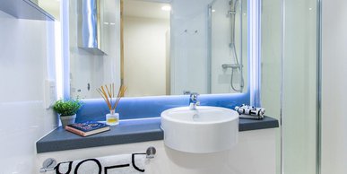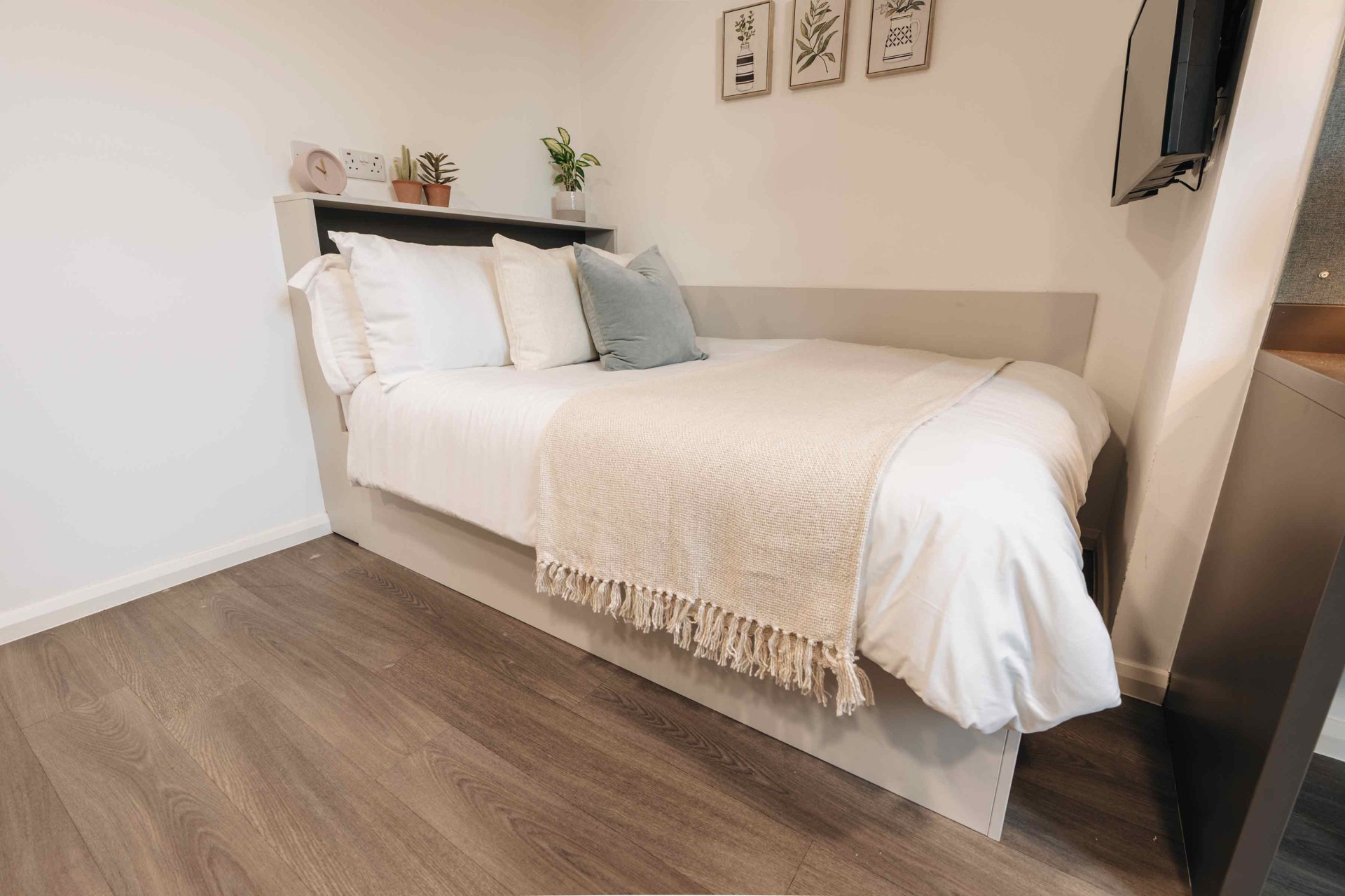 Located on floors 1 - 4, each room comes with a small double bed, loads of workspace, plenty of storage, your very own en suite shower room and you'll share a kitchen/living room equipped with a 40 inch TV.