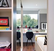 Our twin studios are all contemporary in design and include the latest technology. They each come with two beds, their own en-suite bathroom, private kitchen area and plenty of space for both of you to study or relax. 26.8m2 average size