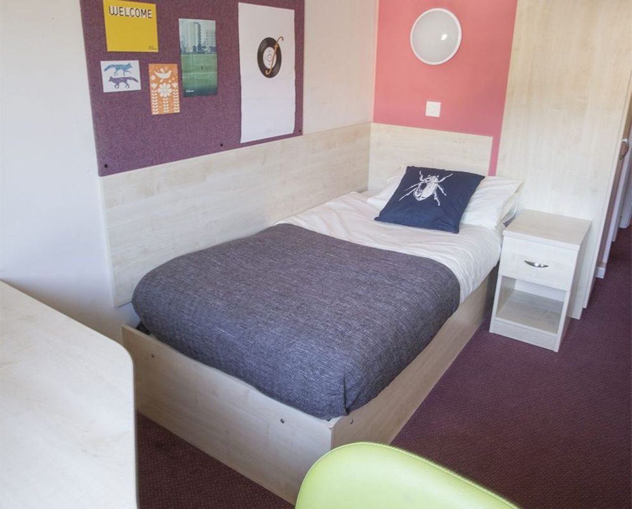 13.6m2 average size, Our ground floor flats come with private en-suite bathrooms, a shared kitchen/living area and plenty of space for you to study or relax.