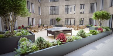 A modern private studio measuring around 14.4 - 16.9 m² with an outward-facing view out into the city, comes complete with a three quarter sized bed, ample storage, and a large study desk and chair. You will also have access to the communal dining area, amazing social spaces, outdoor areas and the on-site cinema.