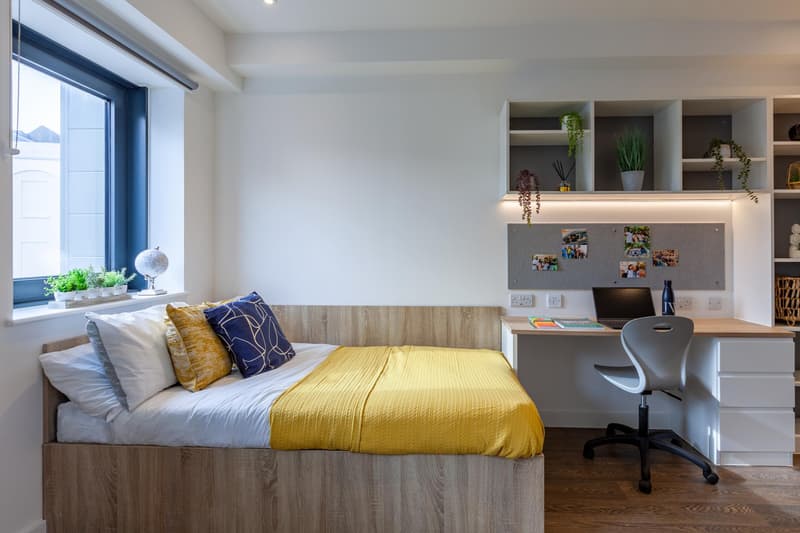 All rooms offer the privacy of your own ensuite bathroom and kitchen facilities for you to cook up a storm. Once you've made the perfect snack, you can plop down on the super-comfy sofas, they're just perfect for that post-food nap. With extra storage spaces, a wardrobe and shelving units underneath your bed, you’ll never have to worry about where to store your personal belongings again. The rooms even come with your own study space, perfect for cracking on with any deadlines you have coming up!