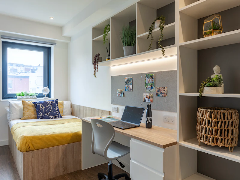 All rooms offer the privacy of your own ensuite bathroom and kitchen facilities for you to cook up a storm. Once you've made the perfect snack, you can plop down on the super-comfy sofas, they're just perfect for that post-food nap. With extra storage spaces, a wardrobe, and shelving units underneath your bed, you’ll never have to worry about where to store your personal belongings again. The rooms even come with your own study space, perfect for cracking on with any deadlines you have coming up!