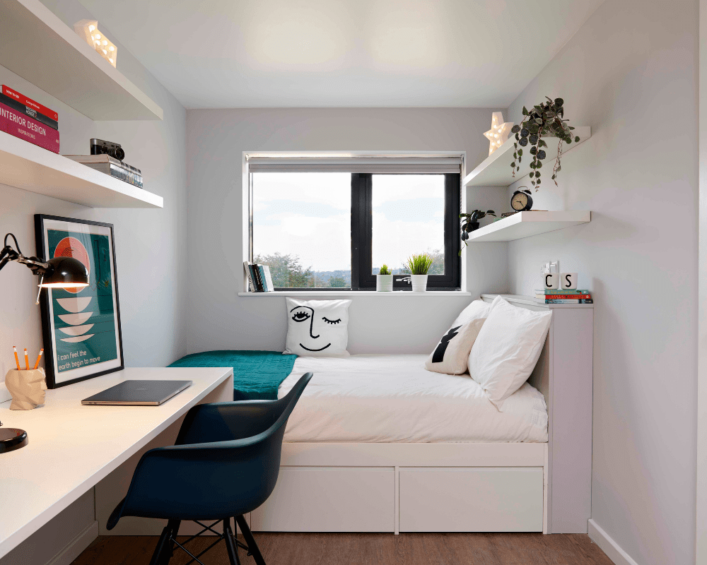 13.6m2 average size, En-suite flat with access to shared kitchen and living space.
