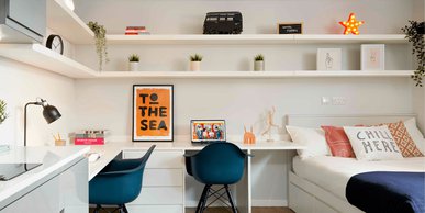 En-suite flat with access to shared kitchen and living space. (Range of room layouts available) 13.0m2 average size