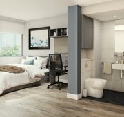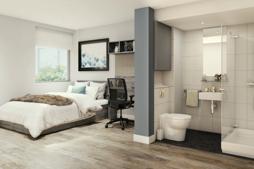 Situated on floors 19-22. Room sizes can vary from 18m2 to 19m2. 3/4 size double bed with under bed storage Private en-suite shower room Private kitchen with 2 ring hob, combi microwave oven and fridge/freezer Study desk Chair Wardrobe Drawers Plenty of storage Dining space