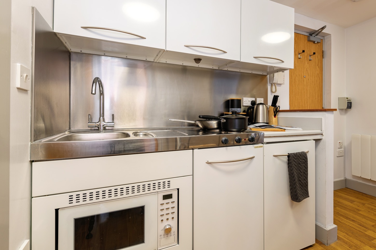 What's included : Private studio apartment (13-17m2) Small Double Bed Wardrobe Desk Chair Fridge with small Freezer compartment Integrated Microwave Oven Television Shelving Unit Electric Hob Dining Area Single Soft Chair Ensuite Bathroom