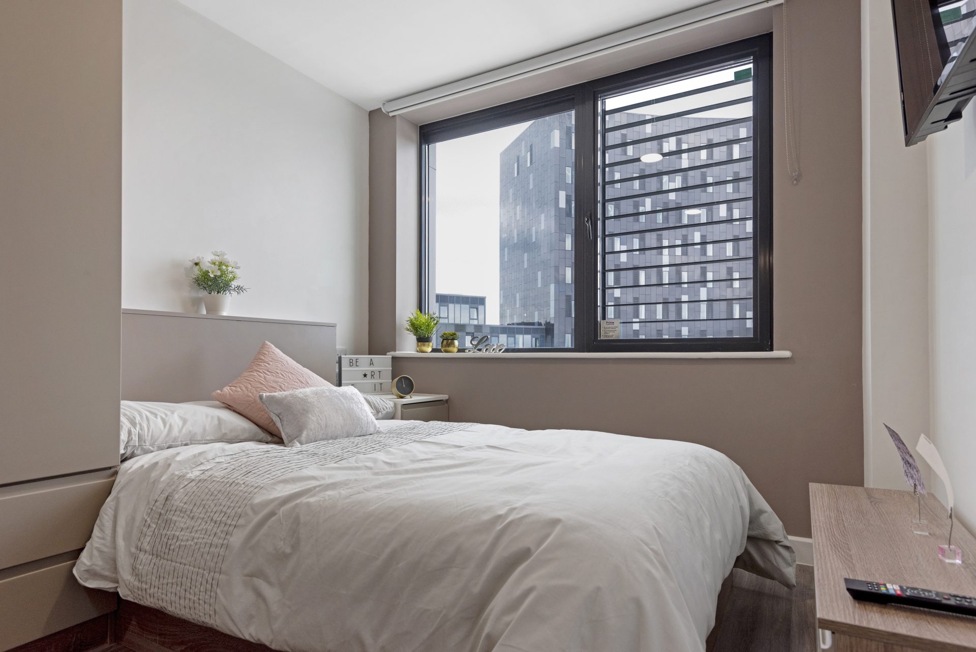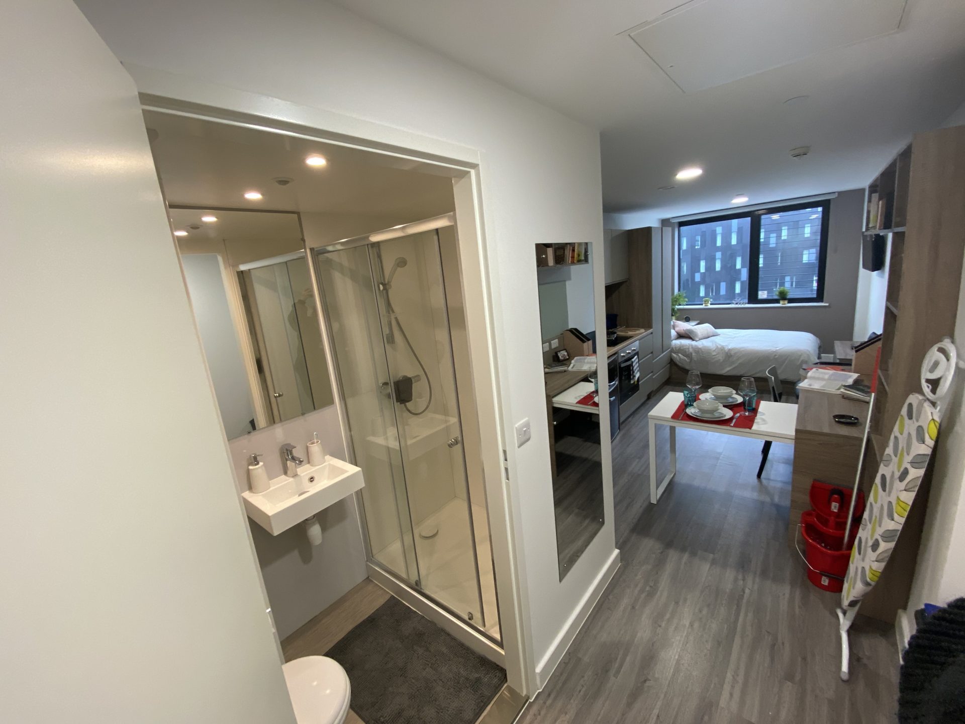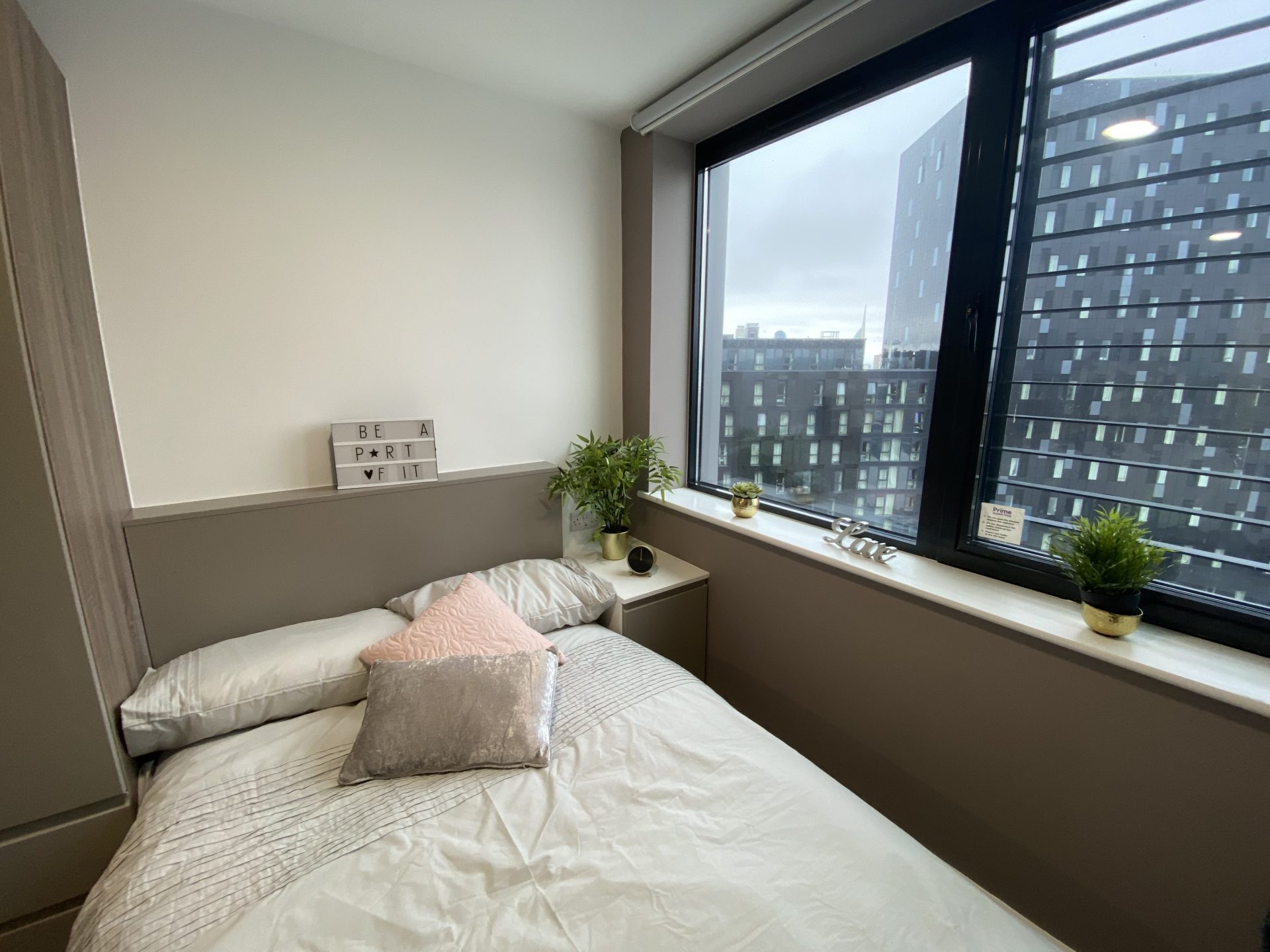 Ensuite room within a shared flat for 4 students. Premium rooms are 13m2 & Premium Plus rooms are a generous 16m2 with windows on 2 sides. Amazing views towards Guildhall, University, Old Portsmouth, The Solent and The Isle of Wight.
