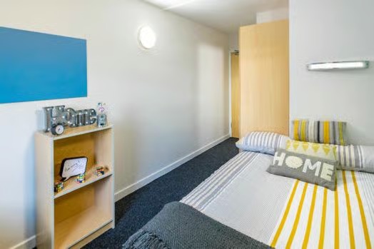 hoose our Ensuite room style if you’re after a fully-furnished apartment featuring a small double bed with under bed storage and an over-bed reading light. You’ll also have your own en-suite bathroom with a shower, ample storage space as well as a study area with a desk, drawer unit, chair and shelves. The kitchen and living area will be shared between you and your flatmates and has a dining table and chairs, fridge/freezers, oven , hobs and microwave. It also comes with a ironing board and hoover! . If you’re wanting to make new friends, our lounge area features a TV, comfy seating and pool tables for you to utilise.