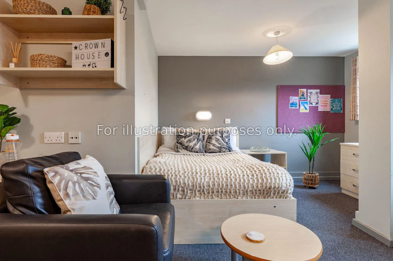 Measuring 350 square feet, our Premium Studio at Crown House is a great choice for students wanting to make the most of independent living. Inside your modern apartment, you’ll have your own double bed, your own study desk, 2 double wardrobes to store all your personal items as well as a modern kitchen with all the amenities you could need to cook new recipes.