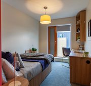 Measuring 12m2, you’ll have your own small double bed, study area with desk, chair, and tons of storage space. You’ll even have your own ensuite bathroom, making those mornings before uni that much easier. The fully fitted kitchen is shared between 3 or 4 others and comes with a hob, oven, full-size fridge/freezer, and a breakfast bar to eat at.