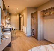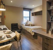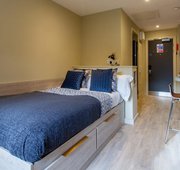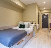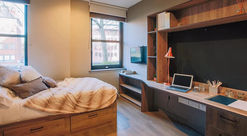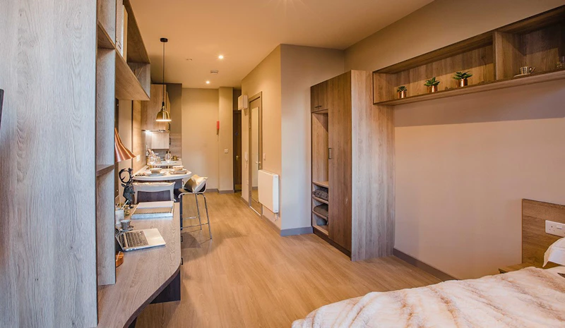 All the studios at New Century Place Student Accommodation are lavishly large and beautifully equipped with everything that a student needs. A cosy double bed with under the bed storage, shelves and spacious wardrobes so that your belongings get a safe space, and in certain units, a walk-in wardrobe — a true luxury defined — are all available. If you are a person who prefers solace and peace then studios are perfect for you. You can thrive in your own space and when you feel like socialising head out to the common room and mingle with other residents and make lifelong connections.