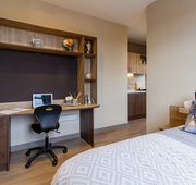 You’ll find a plush bed, an inviting study desk and chair for your academic pursuits, and a compact dining area where you can share meals with friends. The wardrobe and ample storage ensure your belongings are neatly organised. Cook your favourite dishes in the modern kitchen, and enjoy the convenience of your private bathroom.