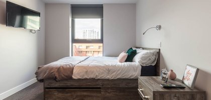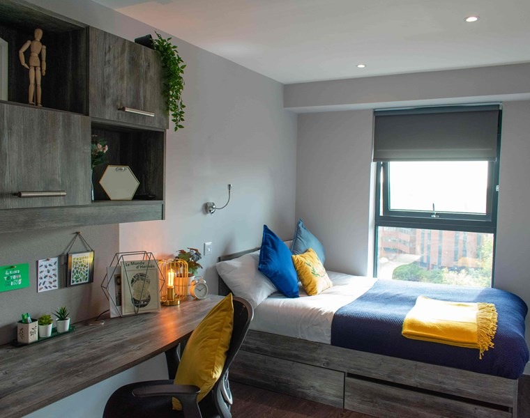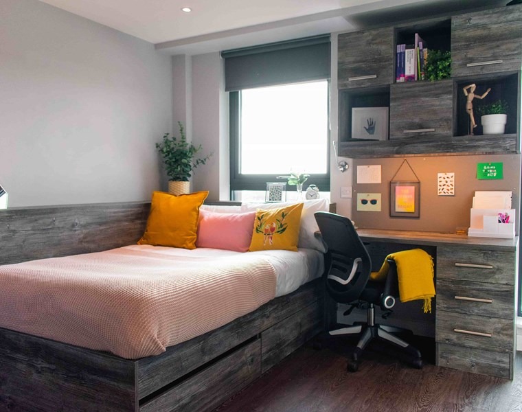 Our 4 bed apartments feature the largest rooms in the buildings and are almost 3 times the size of our 1 beds. Pick one of these rooms and its likely you’ll forget you’re even living in student accommodation!