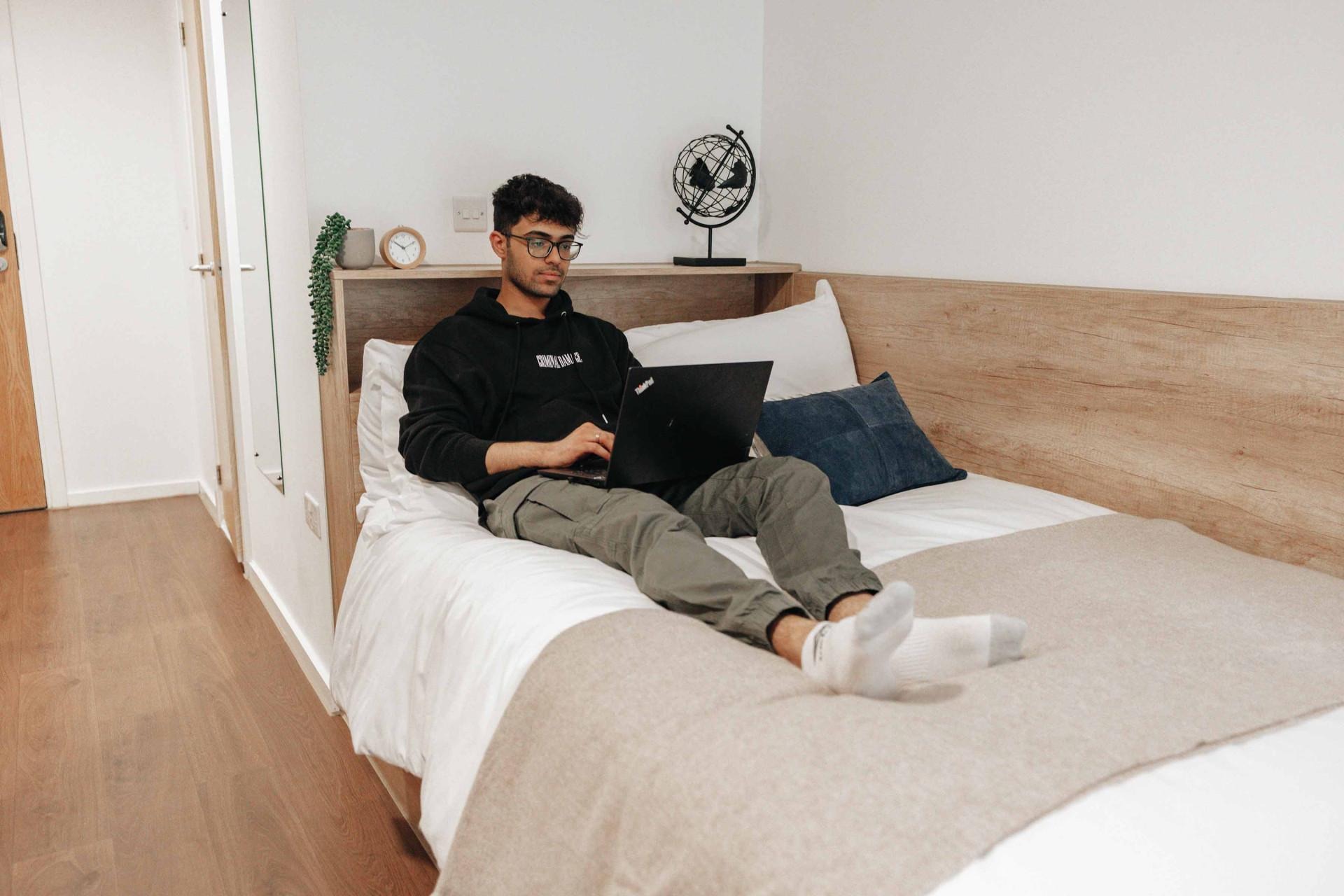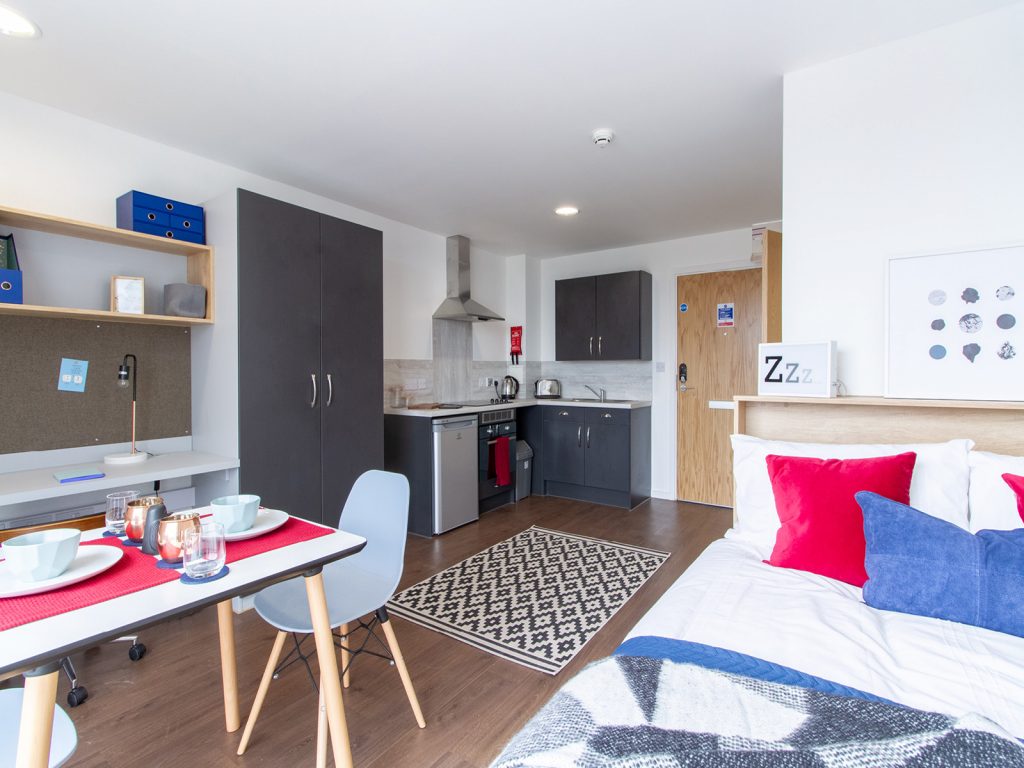 Bailey Fields is home to a diverse and welcoming community of students from across the globe with bilingual staff on hand to enhance the student experience at every turn. Grab the biggest room and be the envy of all of your flatmates! This room type includes all of the same great features as our Gold En-Suite but with loads more space as well as a shared washer/dryer within the communal kitchen and lounge.