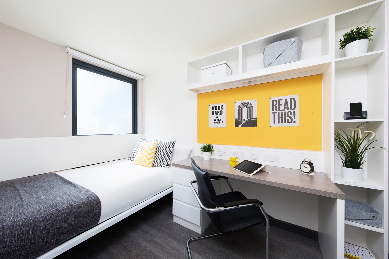 Private Bathroom Shared Kitchen 4-6 flatmates 3/4 bed Desk chair Chest of drawers Curtains Desk Full-length mirror Under bed storage Wardrobe