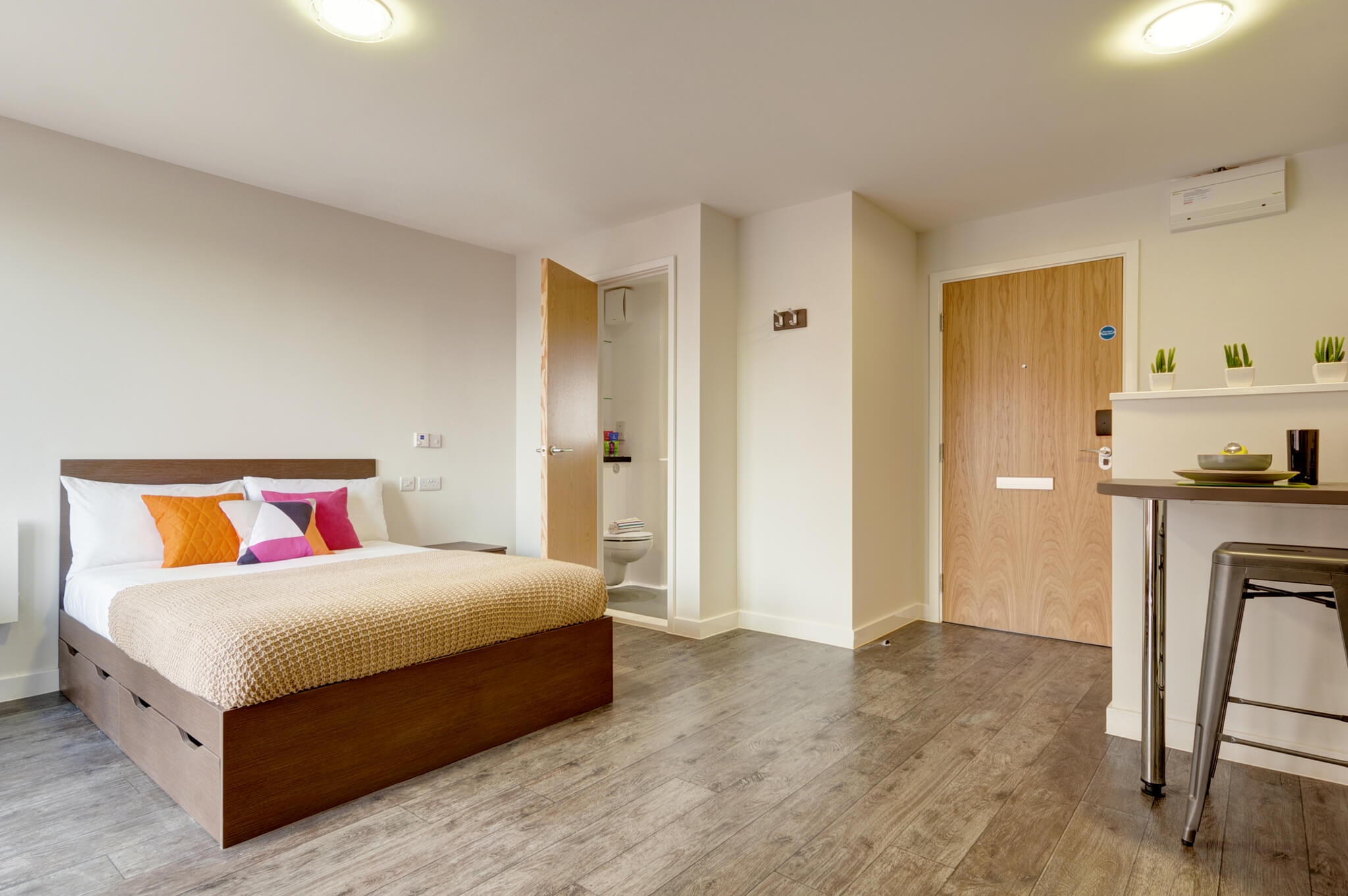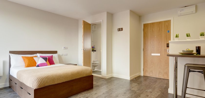 The property includes a diverse selection of accommodation options for students. You can choose to stay in a cosy ensuite or a spacious studio room. The student accommodation at Cornerhouse even has large apartments for students who prefer booking housing with their friends. The management even considers your preference while allotting rooms with provisions for easy accessibility. You can even ask for group bookings, specific floors and placement with students from the same batch. The en-suite room is a great choice for students on a budget. This private bedroom includes a study area and access to an attached bathroom. The Ensuite Bronze and Ensuite Silver are highly recommended options for students.