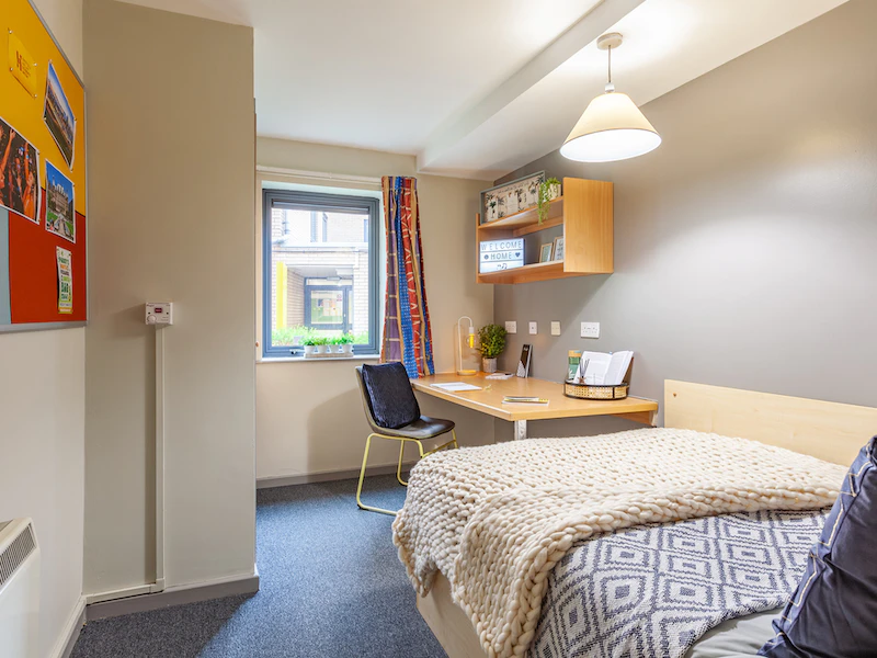 We understand that each student has their own preference, which is why we offer a wide range of room sizes to choose from. Picture yourself in a cozy space, complete with a spacious ¾ size bed featuring convenient under-bed storage. You'll also have ample shelving, a desk area with a comfy chair, bedside tables, and a massive wardrobe to store all your belongings. We've taken care of every little detail, ensuring that your room provides the utmost comfort throughout the academic year.