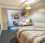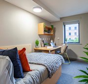 Featuring a ¾ sized bed, lots of wardrobe space and your very own desk area, you’re guaranteed a comfortable stay in this spacious abode. It’s part of a cluster apartment, where all students will share a modern kitchen and living area, equipped with high-spec amenities.