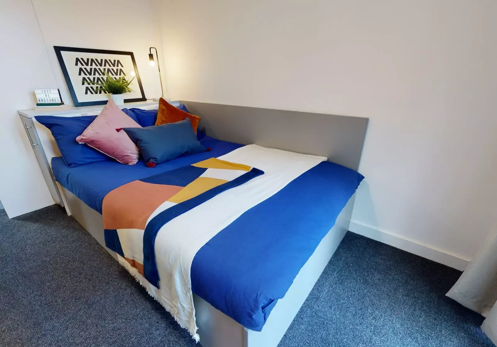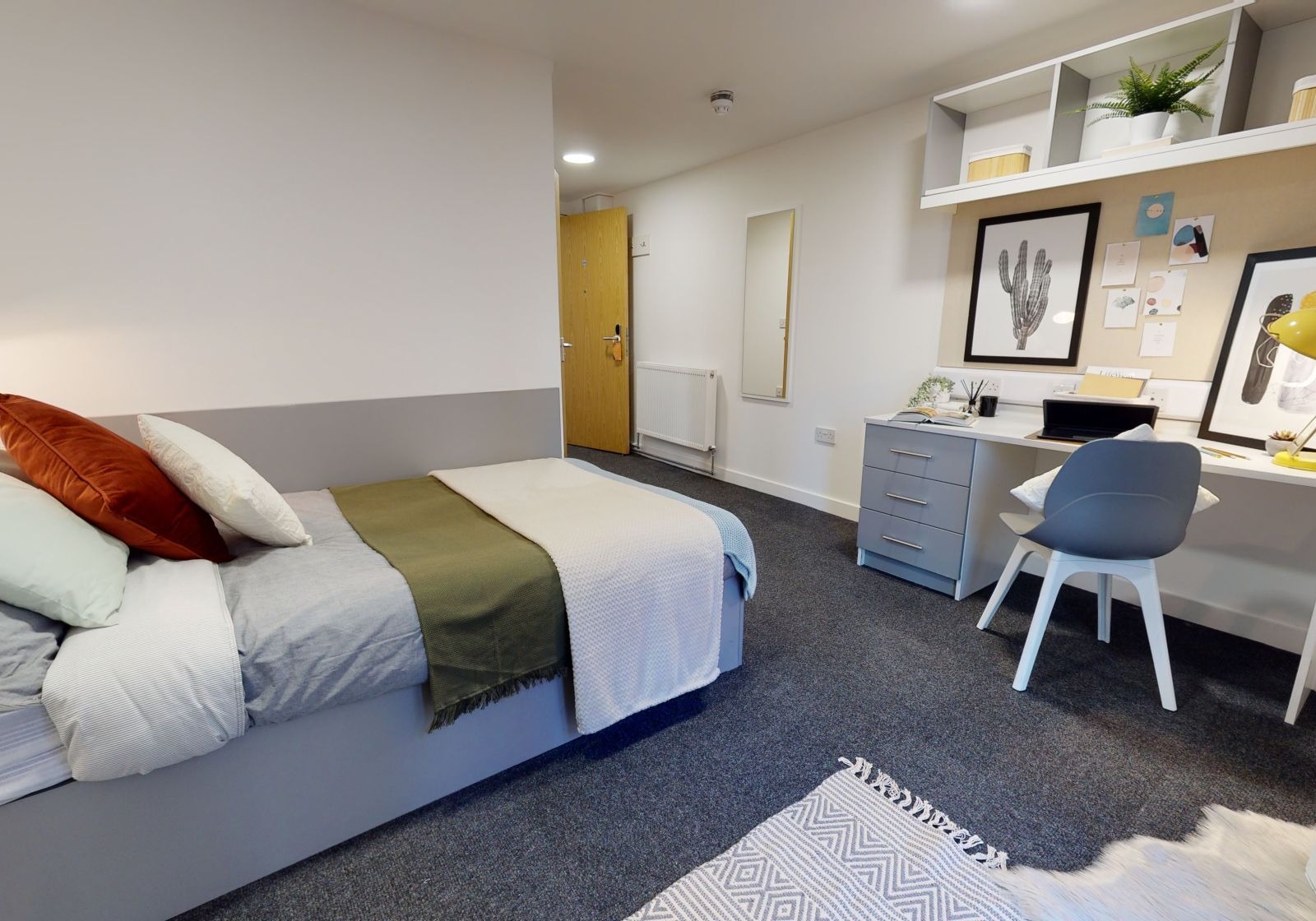 CENT200-031125Located on the top floor offering a little extra space than Silver En Suites at 19 sq m, with a bright, modern feel, a private bathroom and small double bed. As well as the privacy of your room with study desk and lots of storage you’ll enjoy a social vibe from sharing a spacious open-plan living room and kitchen with your flatmates. With a 40” smart TV, all the cooking equipment you need, a breakfast bar with slick stools and comfy sofas, it’s well kitted-out. You also get to the enjoy the building’s cinema room, gym, social spaces and study room.