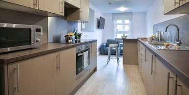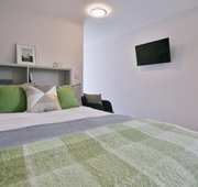 STEE200-031125These apartments are perfect for couples sharing, with one 9 sq m bedroom with double bed and a separate kitchen and bathroom. The bright bedroom has a study desk and chair and plenty of storage, while the fully fitted kitchen is well kitted-out. You’ll also benefit from the building’s social spaces and laundry.