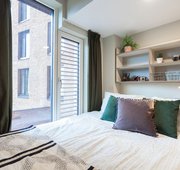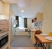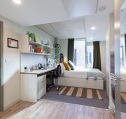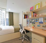 Fancy having the privacy of your room but the social atmosphere of flat sharing? Our apartments are a great choice for those who enjoy having company around but crave the ability to escape into their little sanctuary when needed. Our apartment communal lounges are fully equipped with all the mod cons you could ask for. You’ll have half a fridge and freezer plus plenty of cupboard space for your groceries, a dishwasher, kettle, and toaster ready and waiting for you to put to good use. Kick back, relax and watch TV with your flatmates on our comfortable sofa, or chill in your room complete with en suite bathroom, under-bed storage, black-out blinds to help you get a good night’s sleep and a super comfortable mattress. If you’re not afraid of heights, then this may be the room for you. Our 'Plus' options enable you to enjoy views from floors 7,8,9, 10, 11, and 12.
