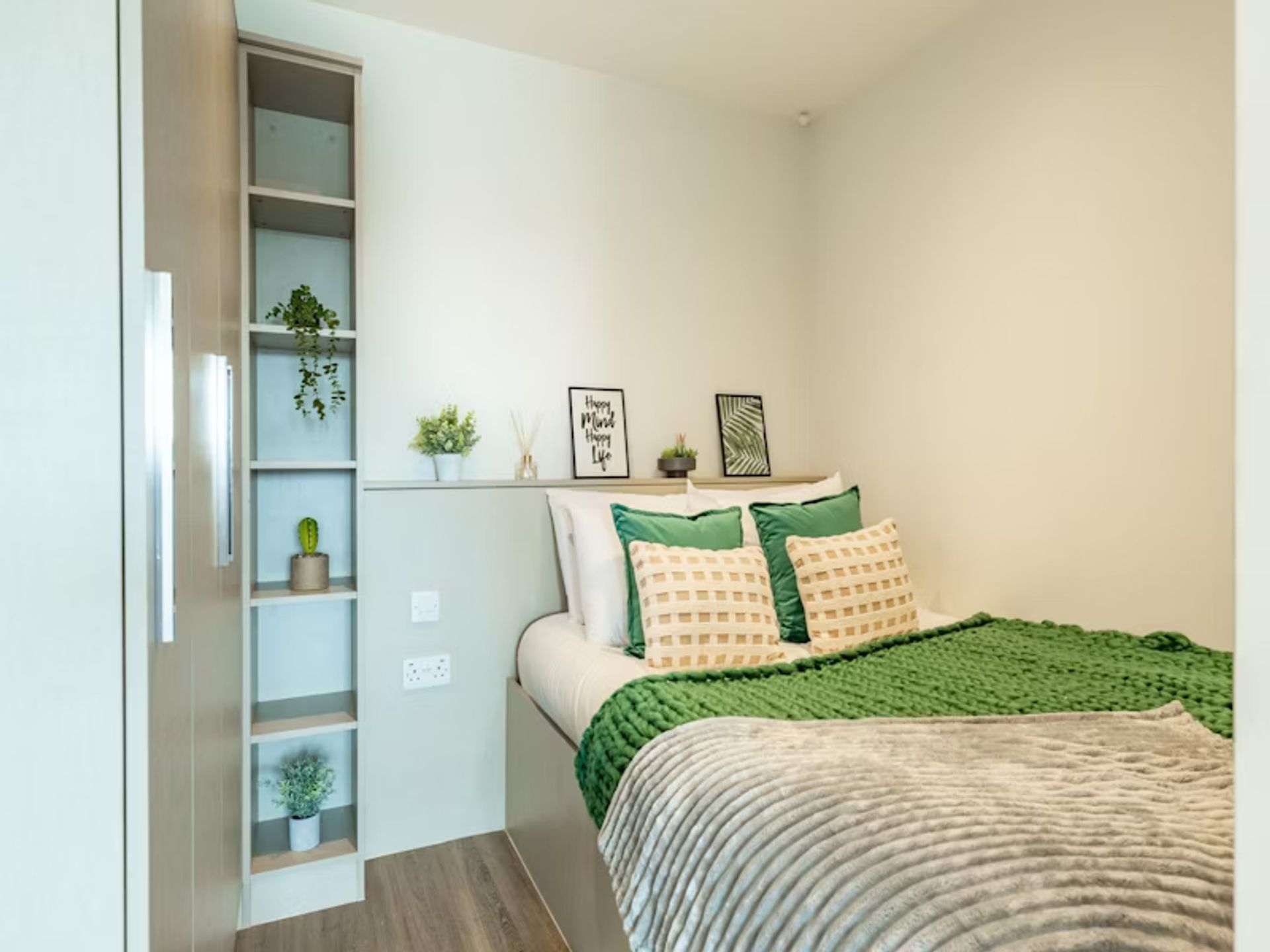 Our 2 Bed Apartment room style is even larger than the Twodio, making it ideal for you to share with a friend. You’ll have a communal living space and fully equipped kitchen perfect cooking nights or study sessions. Within your bedroom you’ll have a comfy double bed, en-suite bathroom and ample storage space.