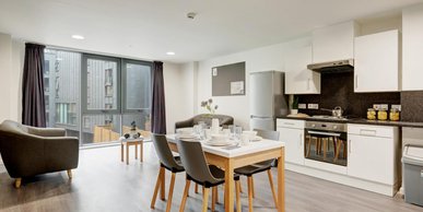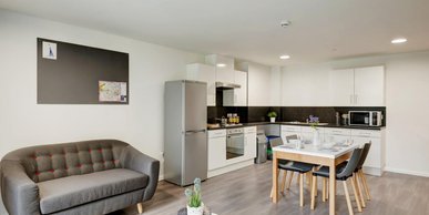 Our flats come with private en-suite bathrooms, a shared kitchen/living area and plenty of space for you to study or relax.