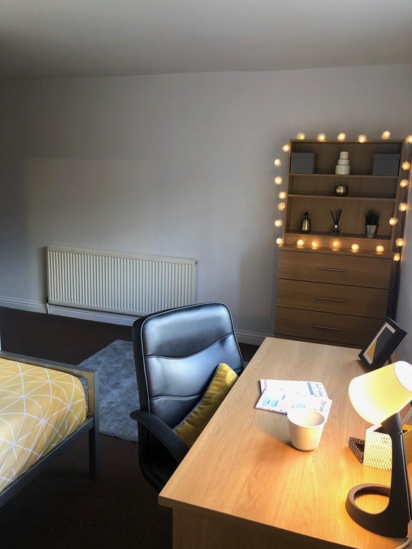 Self-contained, six bedroom student house Small double beds Fully furnished En-suite bathroom, shared kitchen and living areas Approximately 13.5-20m2