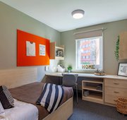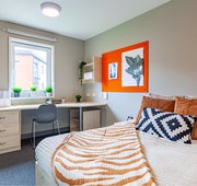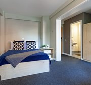 Our Premium Plus Ensuite rooms come with a ¾ bed with under-bed storage and additional floor space so you can have extra room to yourself. Features within the room include a desk and chair, a wardrobe, and a private en-suite bathroom. When you choose this style of the room, you will share a lounge and kitchen area with 3-6 others, with features including a breakfast bar, microwave, fridge/freezer, and oven.