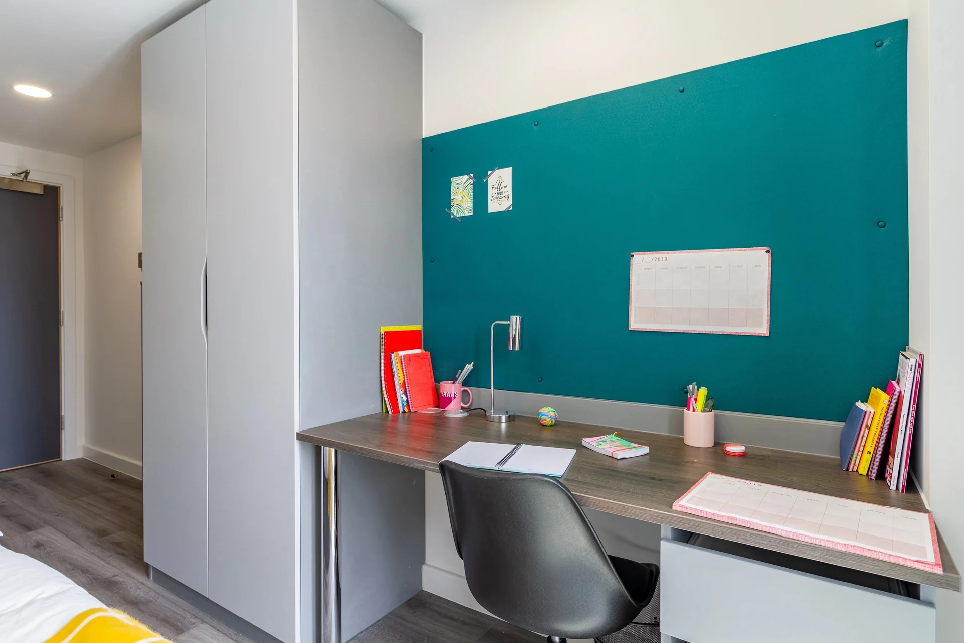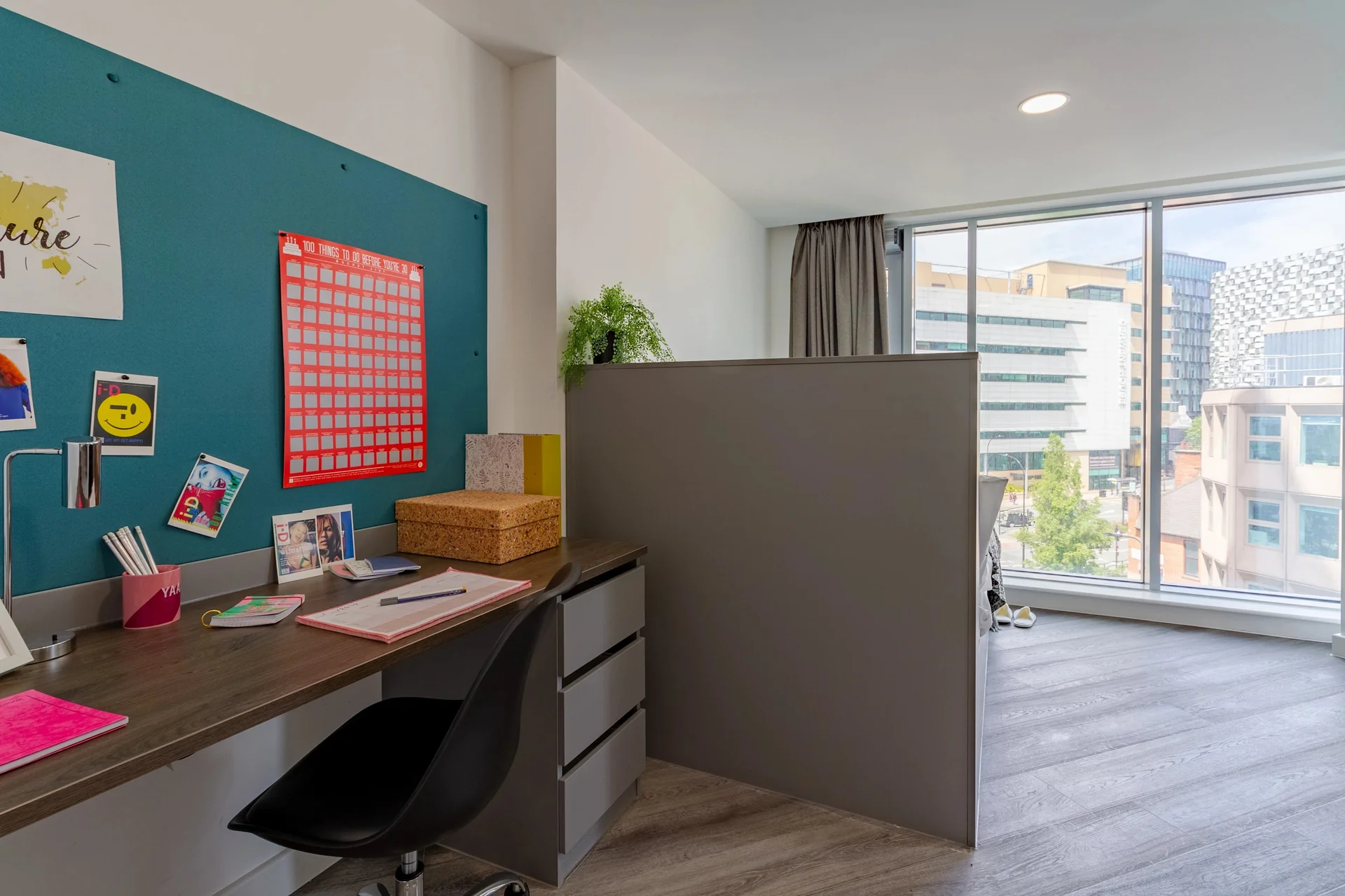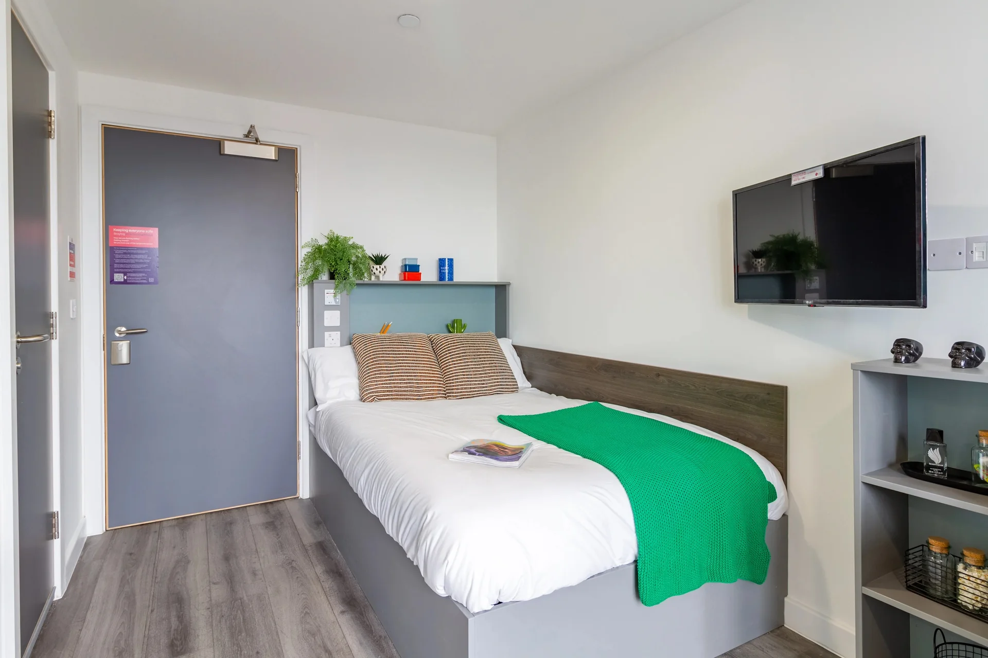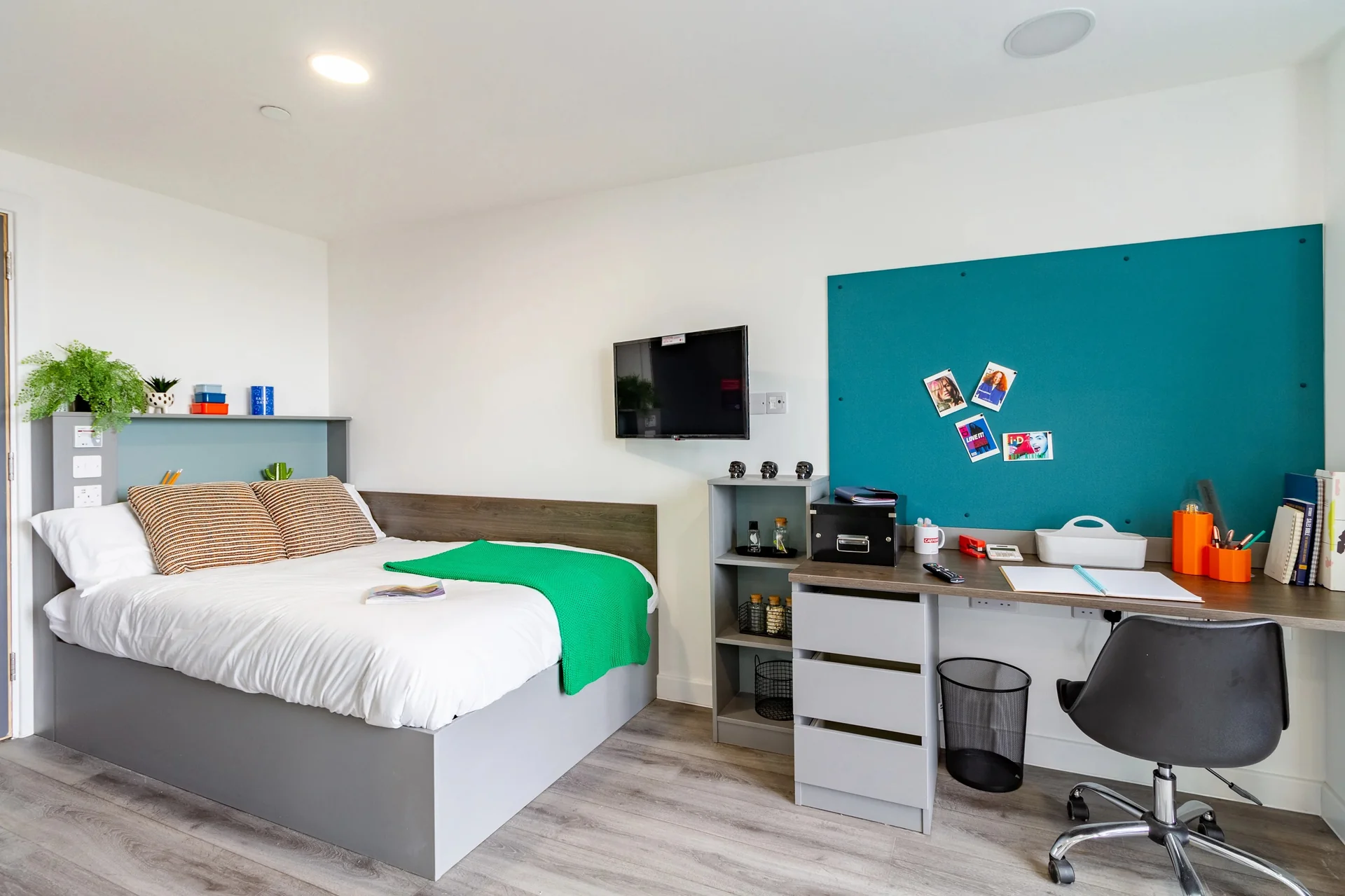 The Gate offers a range of modern en-suite rooms and stylish studio rooms. Each space is thoughtfully designed to provide a comfortable living experience. Each room includes a cosy double bed, an en-suite bathroom, and a dedicated study area. En-suite rooms have access to shared kitchens and living areas, encouraging a social, communal living experience. Studios, on the other hand, offer added privacy and a self-contained kitchen. With contemporary interiors, ample storage, and high-speed Wi-Fi throughout, every room is designed to help students feel at home.