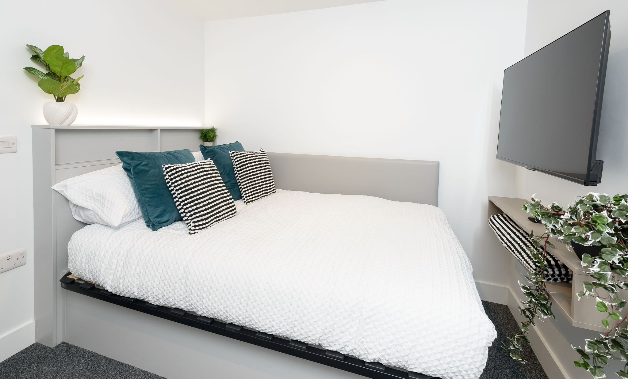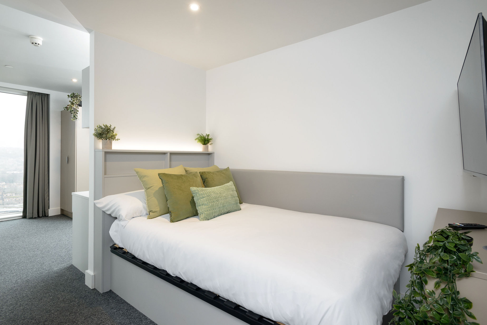 Our true Apartment rooms are 13 sqm in size. As always, these student rooms come with a double bed and ensuite bathroom. (Please note, all photos are for representative purposes only. Actual rooms may differ).