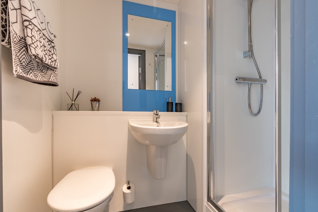 Spacious room with large en-suite. Kitchenette with breakfast bar, ceramic hobs, combi oven and fridge/freezer. Room size can vary from 20.6 - 22.5m2. Accessible en-suite and doorways.