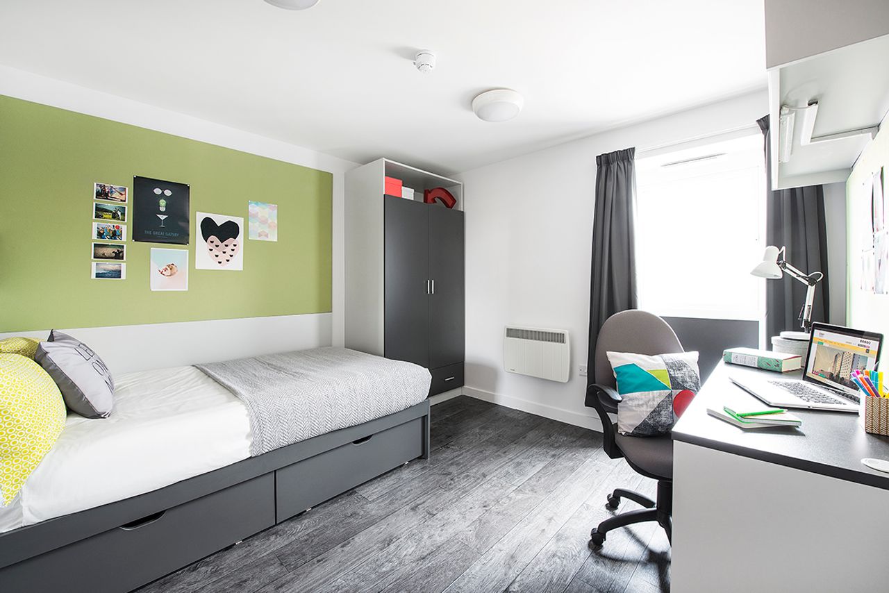Share a homely kitchen-diner with other students while enjoying the privacy of your own modern room with a swanky bathroom to match! These great value rooms are situated on the ground floor and are 13-14sqm, but we only have a few so book now to avoid disappointment.