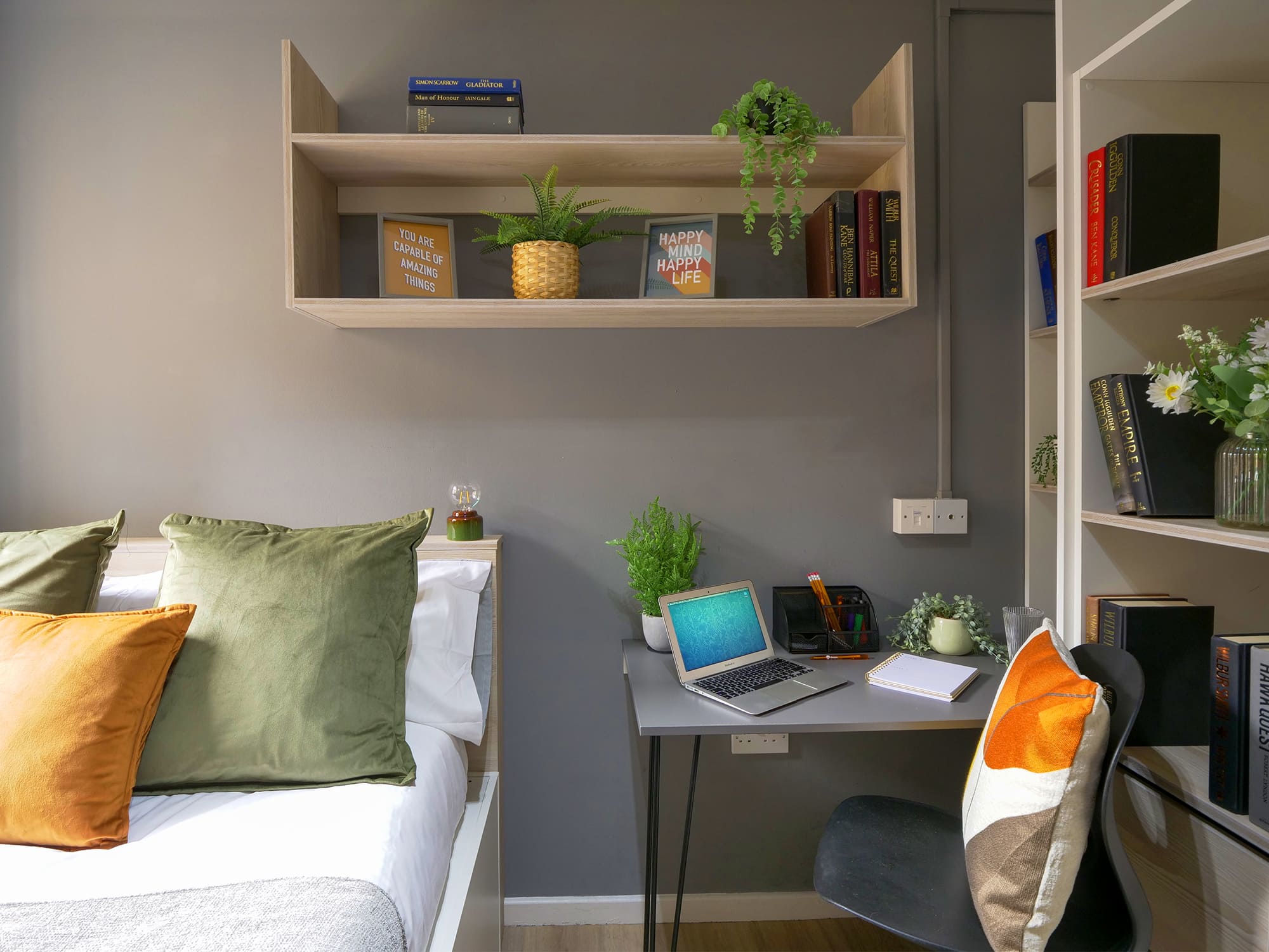 Our Classic 4 Bed Apartment options are ideal for students looking for a fully furnished and spacious room style. You’ll have a cosy single bed to jump into after a night out in Southampton, your own study desk and chair for cracking on with uni work as well as fast Wi-Fi speeds included for those all-important video calls to friends and family. The room also offers a wardrobe and under bed storage so you can keep all your belongings tucked away.