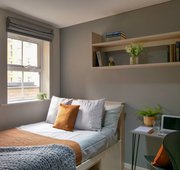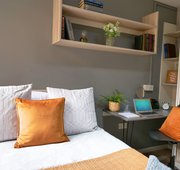 Our Classic 2 Bed Apartment is the ultimate choice for modern students wanting a fully furnished and spacious bedroom but still wanting the social aspect of sharing a flat. It comes with a comfy 3/4 bed with ample storage space, a study desk and chair, and a large wardrobe. Our 2-bed apartments boast a generous 45m2 on average of space spread across two bedrooms and a lounge for entertainment. You also will have a shared kitchen, so you can show off your cooking skills and a shared bathroom, shower.