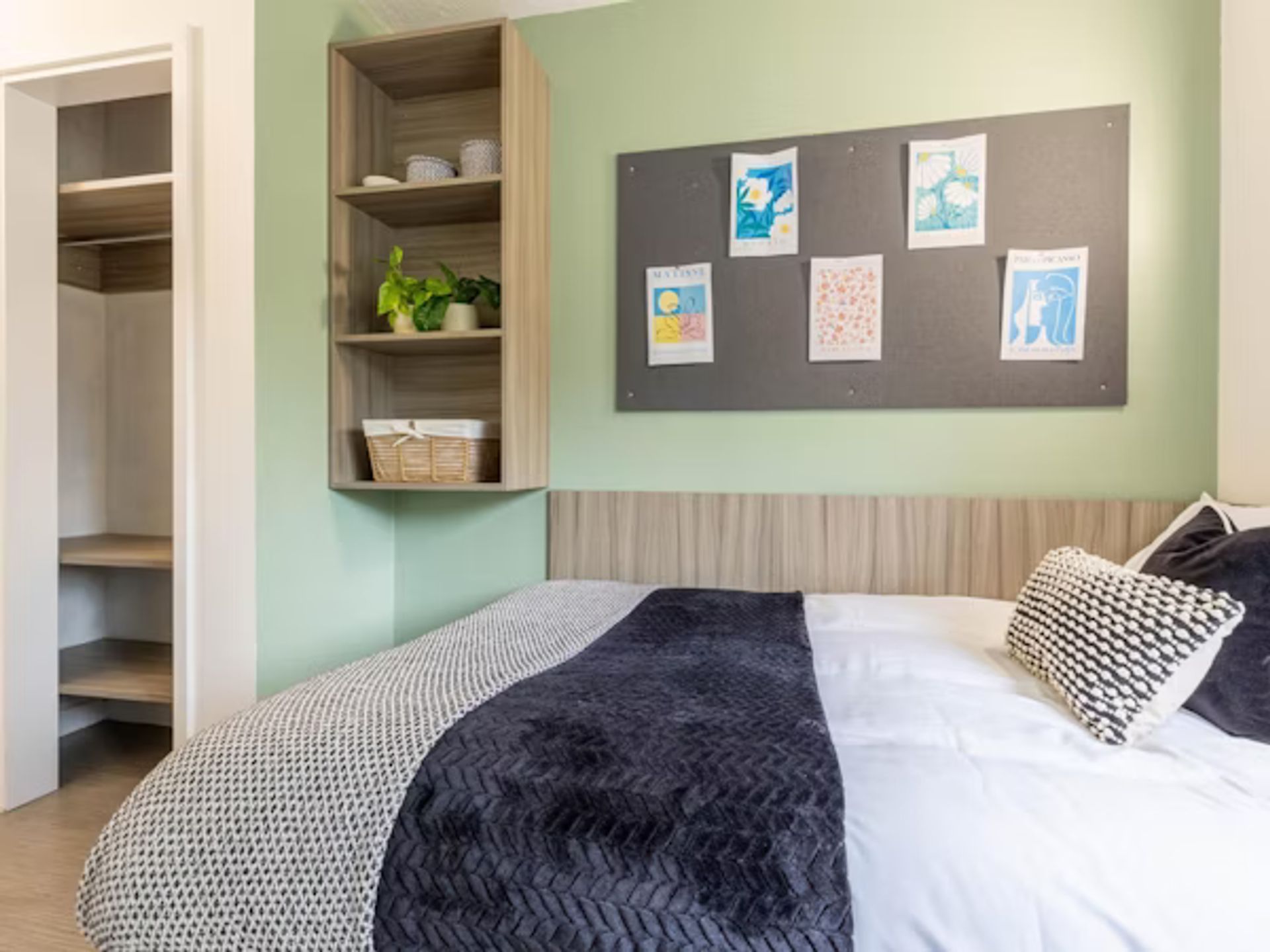 Our Classic Ensuite comes equipped with a comfortable single bed, a convenient study desk for all your study sessions, and an ensuite bathroom for your privacy within the 10-11m² space. You’ll also have access to a communal kitchen where you can whip up your favorite meals. Plus, don’t forget to explore the building’s communal spaces, which include a lounge for socializing, a breakfast bar for your morning fuel, and a pool table for some friendly competition. You can also enjoy the convenience of being within walking distance from your university.