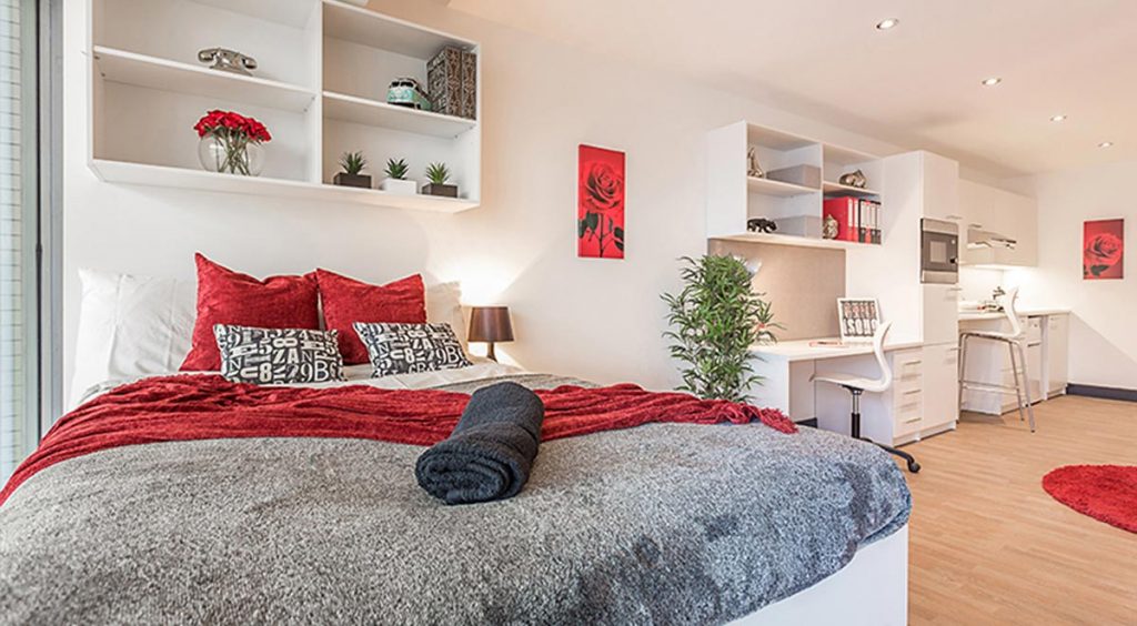 Our ‘Ruby’ studios offer premium city-centre living at unbeatable value. These comfortable apartments with a single bed and offer all of the features you expect in a compact, cosy and cost-effective package.