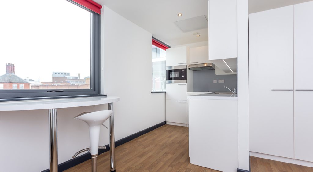 Our ‘Ruby’ studios offer premium city-centre living at unbeatable value. These comfortable apartments are available with both single or double bed options and offer all of the features you expect in a compact, cosy and cost-effective package.