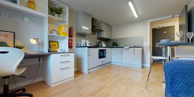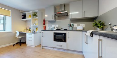 Our premium studio measuring 17.2m² – 28m² is on the upper floors with bags of space! You get your very own kitchenette and study desk too – what a bonus. Focus on studying with no distractions in your own space and mix with your pals in the social spaces afterwards.
