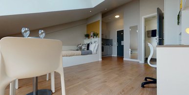 Our classic studios on the ground floor of Centro House ooze cosy vibes, with everything you’ll ever need. With your very own kitchenette and breakfast bar, you can cook yourself a delicious meal without having to worry about other people’s mess! It gives you just the perfect amount of privacy, with fabulous social spaces to use when you feel like it. With rooms measuring 17.2m² – 28m², get a fab night’s sleep in your comfy bed and crack on with studying at your own desk.