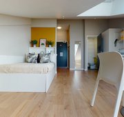 Our accessible premium studios measuring 17.2m² – 28m², perfect for those who want their own space with everything in one cosy setting. Rustle up something delicious in your own kitchenette with a breakfast bar and snuggle in your cosy bed. When it’s time to chill, head to our social spaces or explore the city – it’s right on your doorstep!