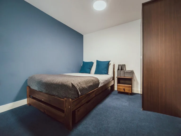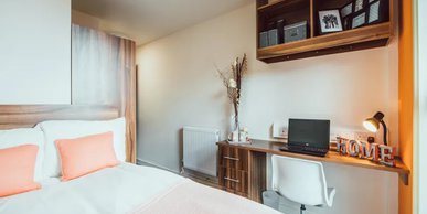Our Standard En Suites are located within our shared apartments with a shared kitchen and living room including a communal TV. All the rooms come with excellent storage, dedicated workspace and an en suite shower room. Average room 12 sqm.