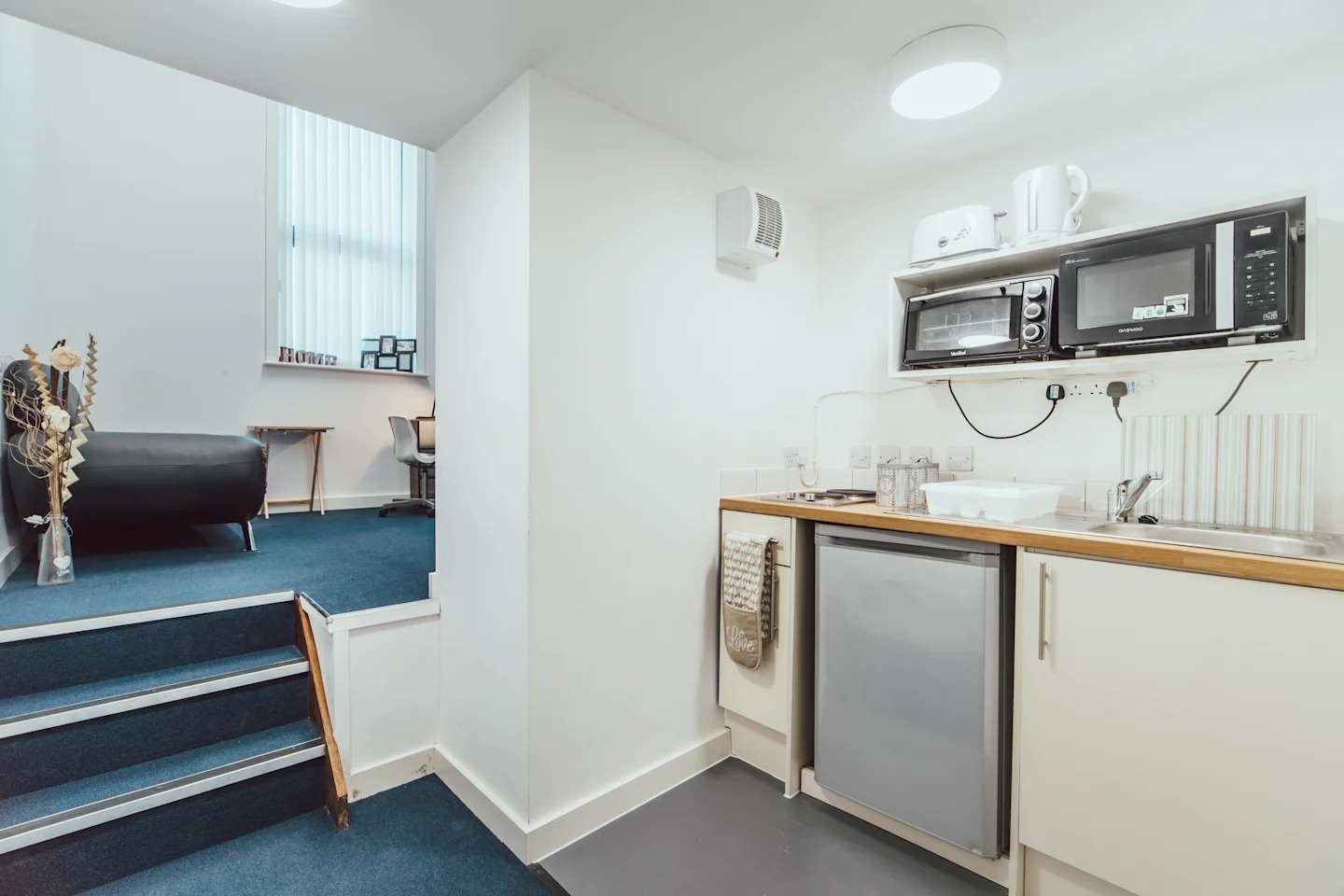 Each of our Silver Studios comes with a single bed, dedicated workspace, a sofa, TV, loads of storage, an en suite shower and a private mini-kitchen. Plus, if you're sharing as a couple, you don't have to pay any extra!